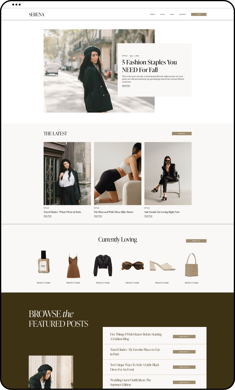 The Serena template is strategically designed to keep your audience inspired & engaged so they keep coming back for more! She effortlessly fuses aesthetics with function, experience design and strategy. Because when you’re building a brand, you need a website that does more than just look pretty.