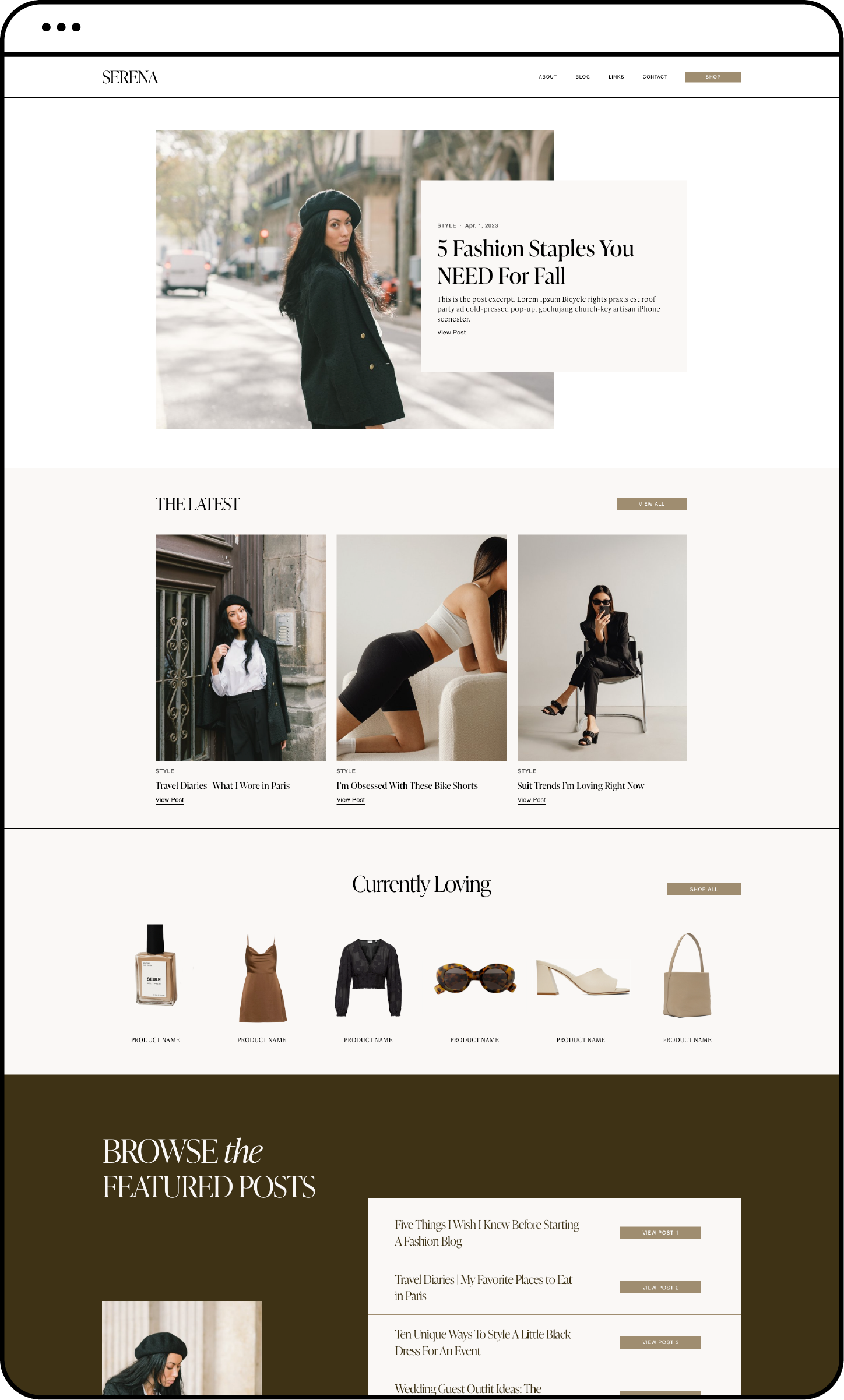 The Seule template is strategically designed to convert casual browsers into paying customers! She effortlessly fuses aesthetics with function, experience design and strategy. Because when you’re building a brand, you need a website that does more than just look pretty.